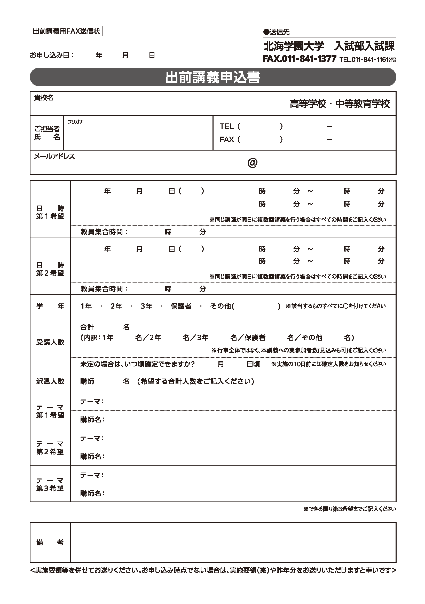 出前講義を通して、本学の講義内容と教員についてより良く知っていただくとともに、進路決定や将来勉強することになる専門分野についての知識や情報の取得などに役立ててください。
