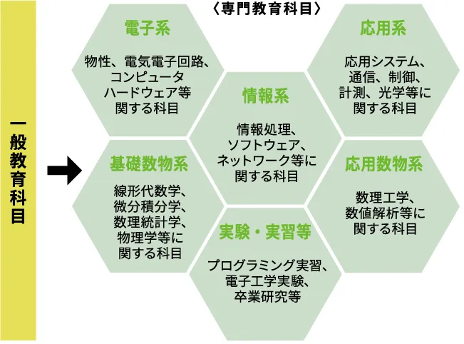 「電子工学」(ハードウェア)と「情報工学」(ソフトウェア)の両方について、基礎から応用まで学べるカリキュラムです。2つの専門性を身に付けられるため、社会のニーズに幅広く対応できます。