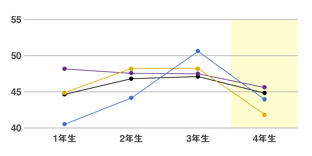 4年間を通して、わからない事を抱え込まないことが増えたと思います。講義の課題や考査対策の際には、今までは自力で時間をかけてやることに意味があると思っていましたが、わからなかったら先生に聞いたり、友人と協力したりすることでわからない事を残さないようになったなと思います。