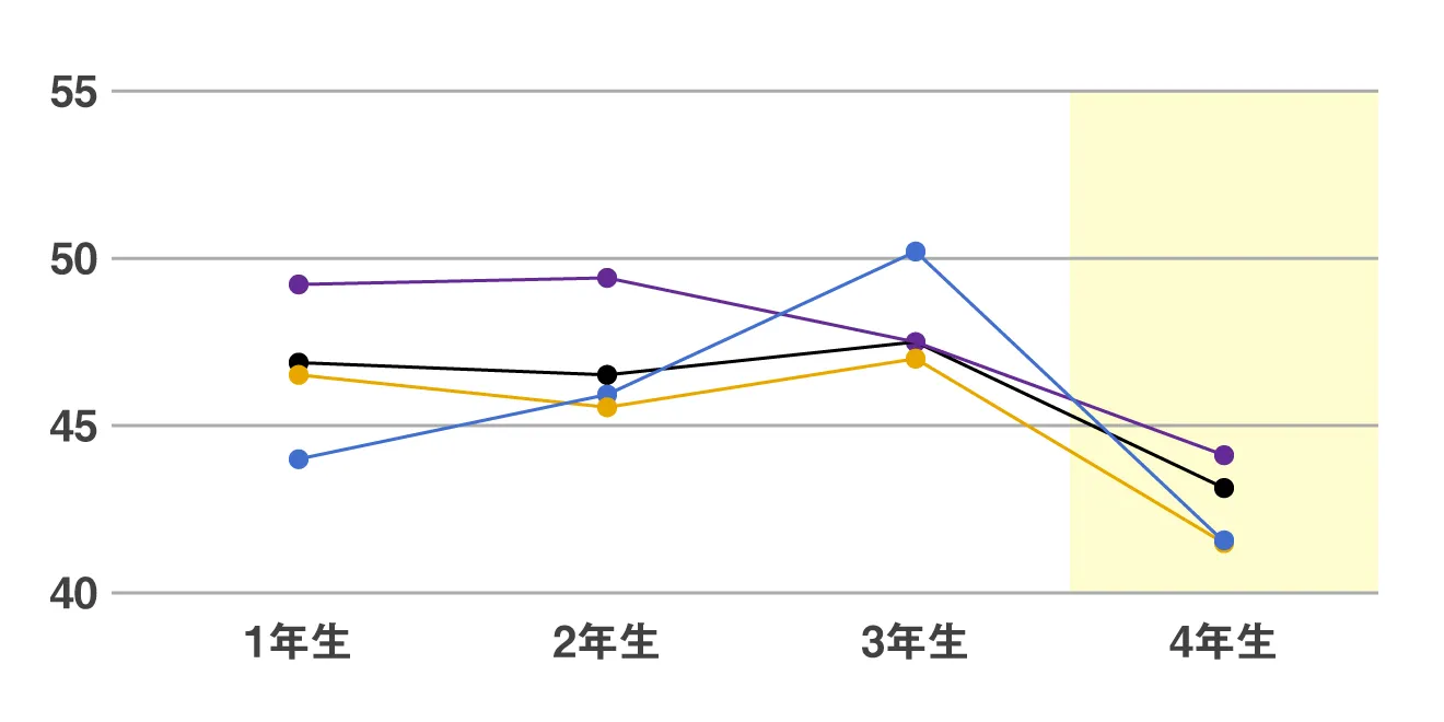 高校時代と比較して関わる人の量が急増したため、周囲の人からの刺激は私の成長に大きく作用したと考える。