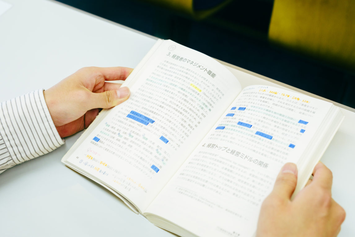入学して、1年次はまず経営学の大枠を把握するために、基礎的な科目を一通り履修しました。学園大の経営学部は、心理学系の科目が多いのが特徴です。そこが僕が興味を持ったポイントでもあったので。関連する科目は特に積極的に履修しました。学んでみると、企業の人事に関することや、経営戦略の元になるマーケティングなど、心理学が経営学にすごくリンクしているのが理解できてどんどん引き込まれていきました。中でも「組織心理学」や、今学んでいる「チームの心理学」といった科目の講義は就活のための企業分析にも関連付けて説明してくださるので、自分事として捉えやすく、実際に志望企業を探す際の参考にもしています。