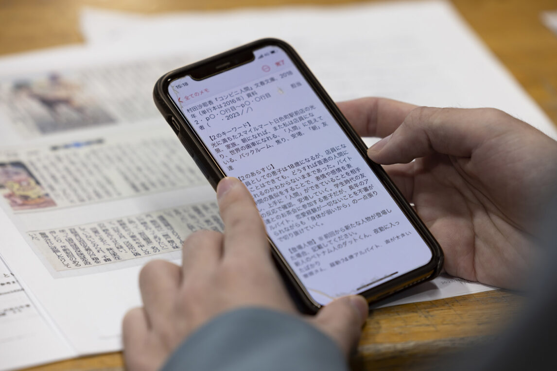 日本文化学科の学びは、文学一つとっても高校までの国語や現代文、古典などとは違い、物語の内容よりさらに深いところに焦点を当て、作者の視点や表現の技法についても学びます。レポートを書く機会も多く、回を重ねるとごとに言葉足らずな部分に気づいたり、もっと相手が理解しやすいように表現しようと工夫したり、文章力の面でも成長できている気がします。