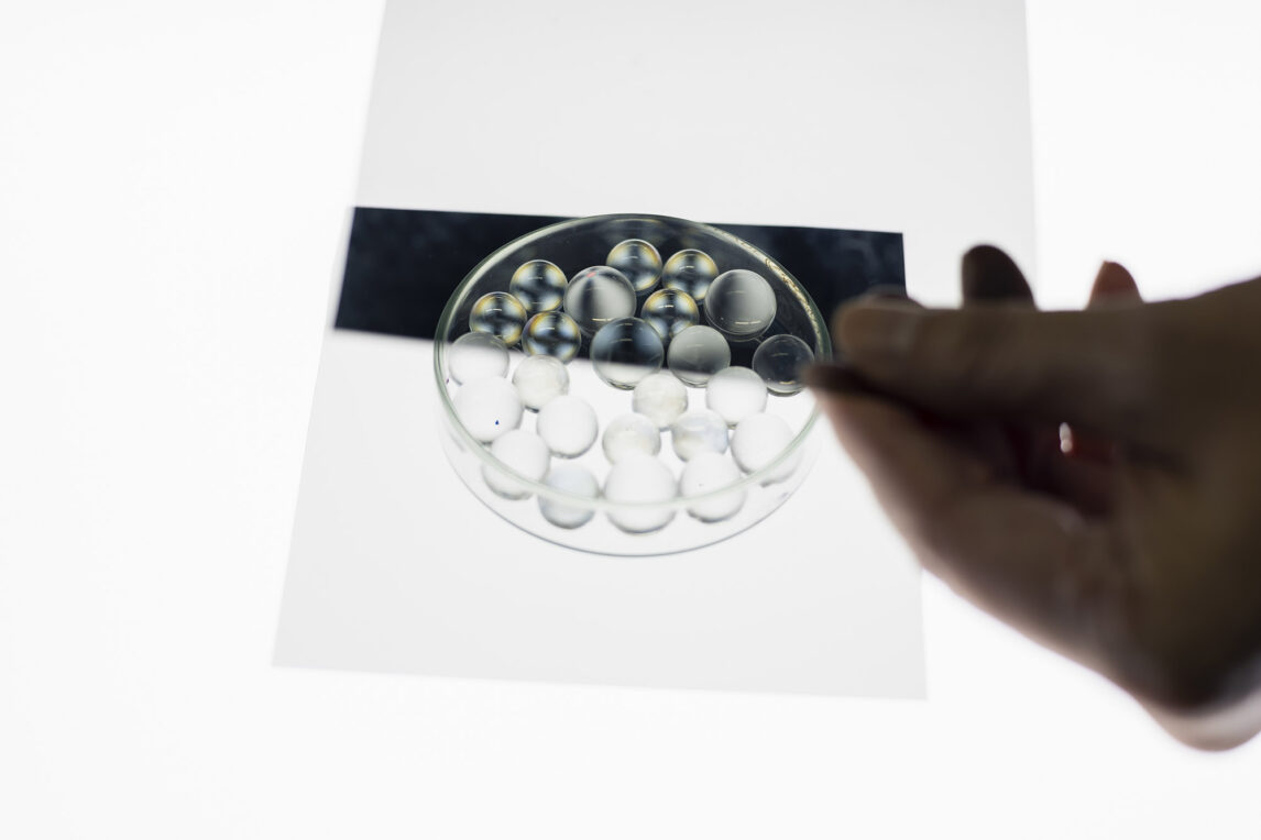 中でも私は、ディスプレイなどの電子デバイスに欠かせない液晶に注目しています。液晶は、液体と固体(結晶)の両方の性質をもった「物質の状態」を表す言葉です。感覚的に表現すると、しっかりと固まっているわけではなく、水のようにサラサラ流れるのでもない、ドロドロした状態です。私たちの体の中や昆虫のハネにも、液晶の構造を見出すことができます。