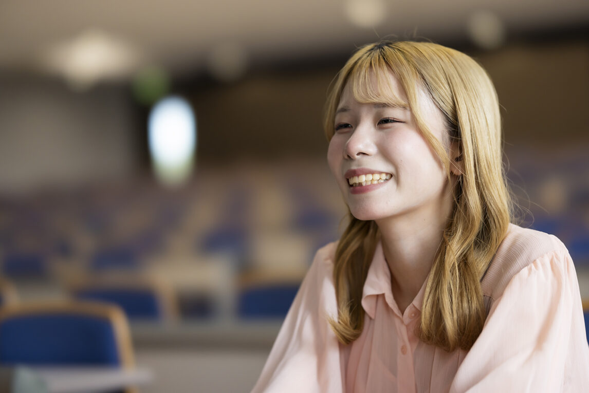 大学は高校までの生活と違って、クラスに縛られることがありません。最初は友だちができるかなっていう不安もありましたが、サークルや授業で気の合う友だちも見つかるし、逆に気が合わない人とは一緒にいなくてもいいし、自分の個性を生かせる場がたくさんあって居心地がいいんです。ただし、大学生活は受け身でいちゃダメ。自分から動けば、4年間という時間をどんどん充実させられます。残りの大学生活、まだまだいろんなことにチャレンジしてみたいですね。