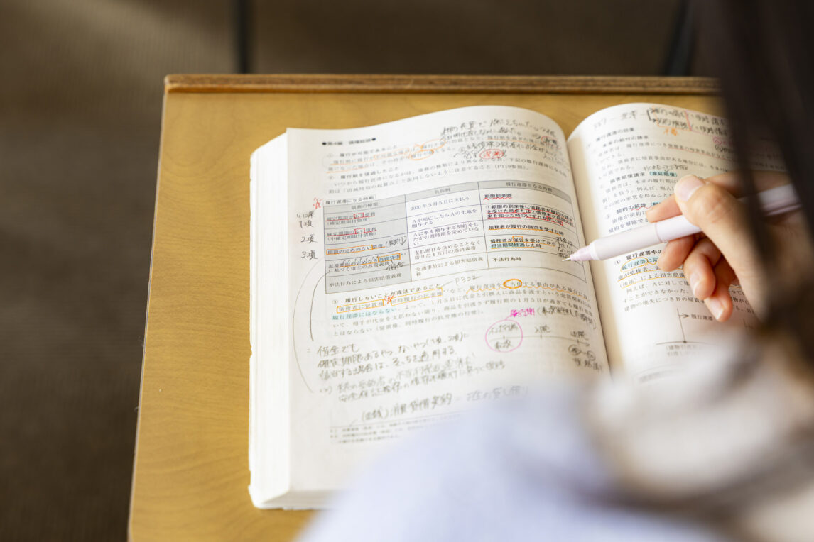 公務員試験対策として、学内で開かれる公務員講座を2年次から受講しました。講座の進度に合わせて予習・復習をしながら、第一関門の筆記試験に向けて対策。3年次の2月から始まった公務員模試を受けて、間違えた問題や自分なりに知識が足りないと感じた分野を見直しました。また、授業が終わると図書館で勉強するという生活を送っていましたが、友人と分からないところを教え合うなど、周りの人にも支えられました。