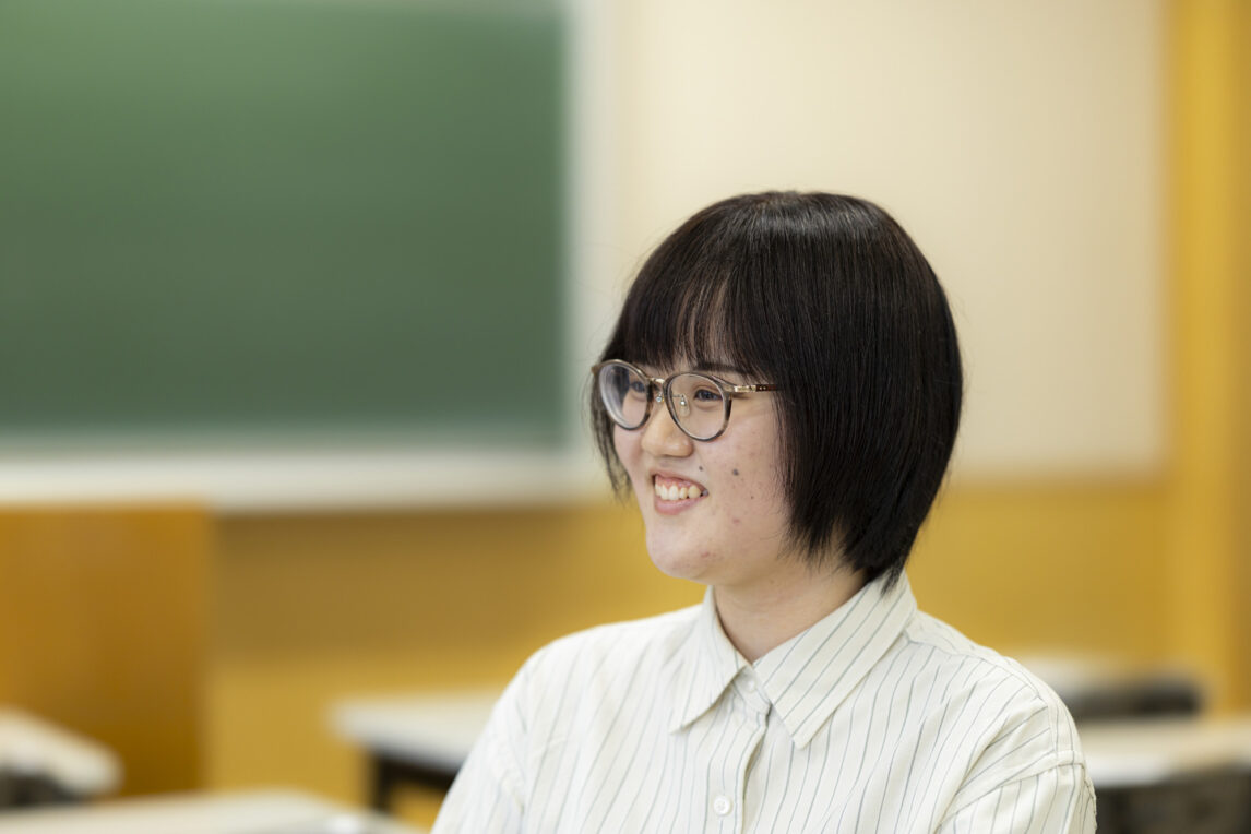 幼少期から物語を読むのが好きで、創作にも親しんできた森本茉奈さん。大学では興味・関心のあることを学び、視野を広げたいと考え、文化サークルの文学会や読書同好会おおぐま座に所属しています。田中綾先生の授業をきっかけに、短歌の魅力に惹き込まれた森本さん。卒業までに自作をまとめた歌集を作りたいと意欲を見せます。