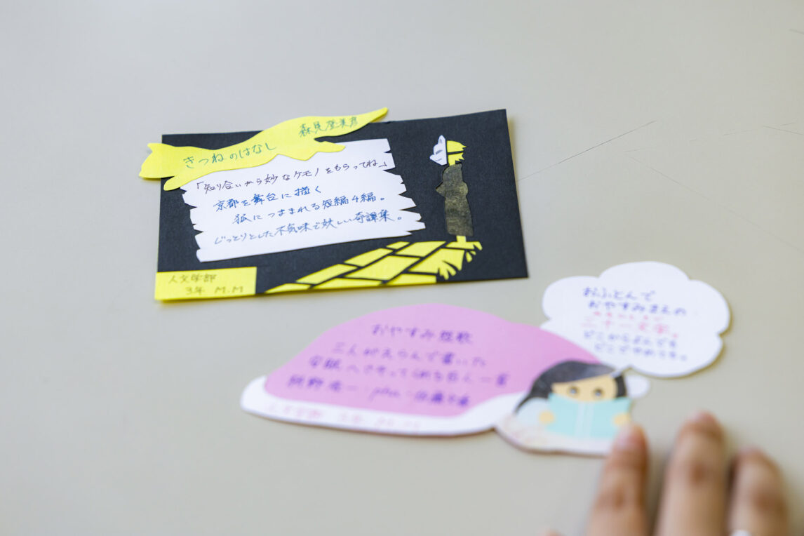 1年の2学期に履修した田中綾先生の「日本文学史II」をきっかけに、それまであまり触れていなかった短歌にも興味が広がりました。授業では毎回、出席カードに短歌や川柳を書いて提出するのですが、いい作品を書くと次の授業で先生から講評をいただけるんです。私も何首か先生に評をいただけたことで、短歌を詠む楽しさを知りました。