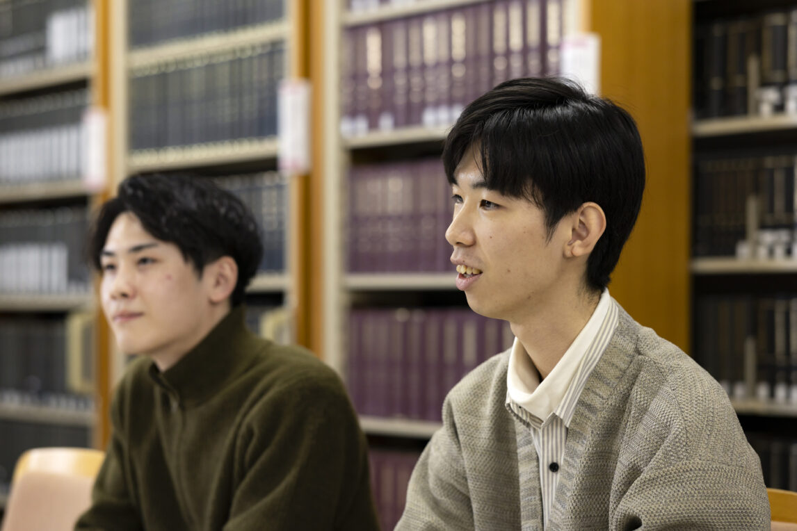 本学法学部は、北海道内で唯一の法科大学院である北海道大学法科大学院(以下、北大ロー)と連携した法曹養成プログラムを有しています。このプログラムで学ぶと、所定の条件を満たすことで3年間での早期卒業が可能となり、5年一貫型教育選抜や開放型選抜など、一般試験とは異なる受験方式でも北大ローに挑戦できます。このプログラムを活用して早期卒業と北大ロー(2年課程)への進学が決まった永田惺稜さんと、4年次に北大ローおよび複数の法科大学院受験に挑戦する八木蒼生さんにプログラムのメリットを教えていただきました。