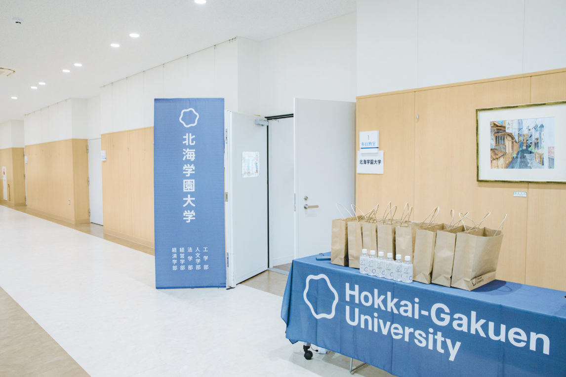 大学説明や入試制度説明へのご参加はもちろん、サークルや就職の情報を記載したパネルや学部独自の資料なども展示し、学びのことから札幌での学生生活など、進学に関する様々なことをお話しをさせていただきました。