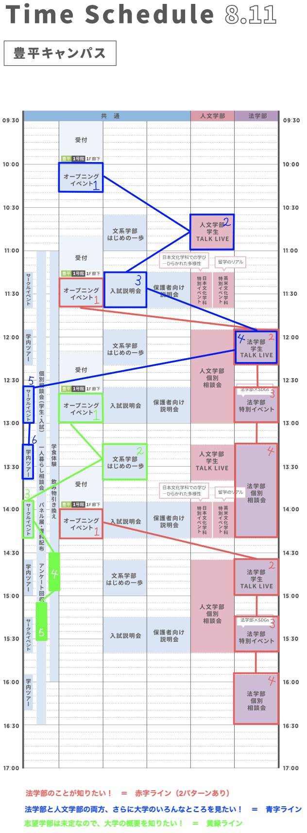 8/11のタイムスケジュール 豊平キャンパス 山鼻キャンパス