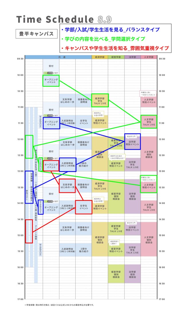 当日までにタイムスケジュールを確認し、タイパ良くOPEN CAMPUSを楽しみましょう!