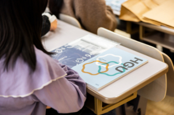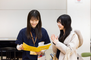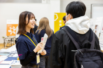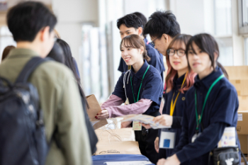 受付では学生スタッフがお出迎え。当日のスケジュールのほか,大学のオフィシャルグッズとお水をプレゼントしました。