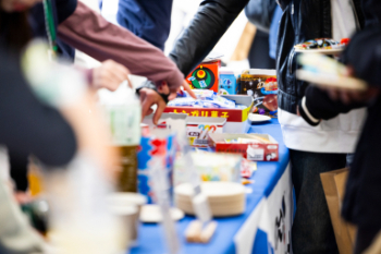 こちらではドリンクやお菓子をプレゼント♪学生スタッフがカフェ店員となり,休憩スペースでは来場者のみなさんと楽しくおしゃべりさせていただきました!雑談のなかに進路の悩みや一人暮らしの相談,大学生の本音などが飛び交う貴重な時間になりました。