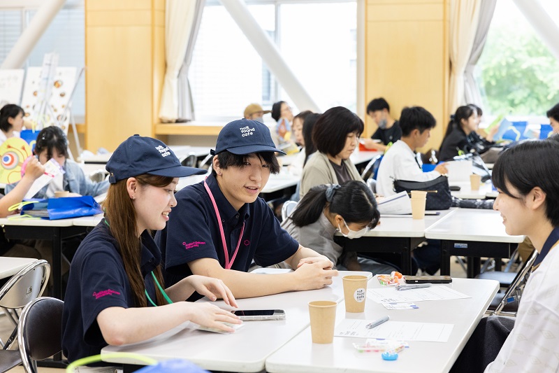 学生スタッフがカフェ店員となり、ドリンクやお菓子をプレゼント!来場者のみなさんと楽しくおしゃべりさせていただきました♪雑談だけではなく進路の悩みや一人暮らしの相談など、大学生のリアルな本音が飛び交う貴重な時間となりました。