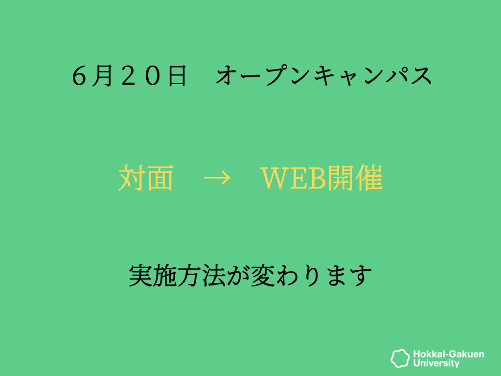 6月20日 オープンキャンパス 開催方法変更のお知らせ