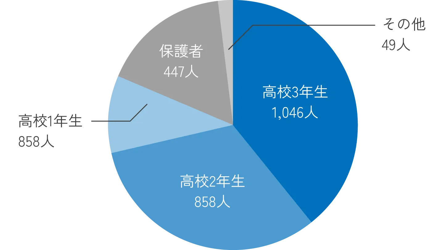 保護者の方ももちろん参加できます。本人(高校生等)が申込みされる際に「同行者」としてお申込みいただくか、ご自身のLINEアカウントより直接お申込みください。また、本人が来場せず保護者だけの参加も可能です。