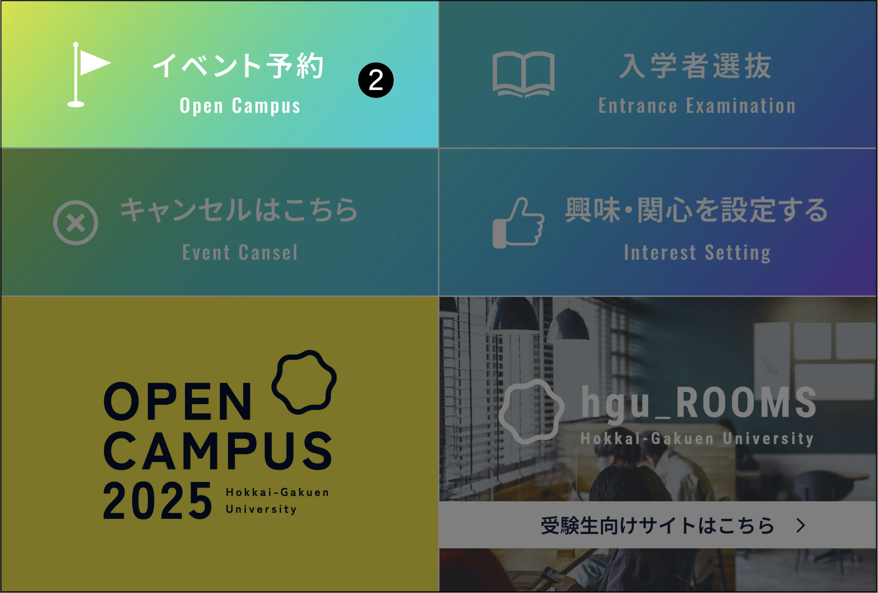 北海学園大学公式LINEを友だち追加後、イベント予約メニューよりお申込みいただけます。