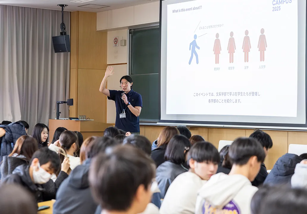 大学の学びを一足先に体験! 教員や在学生とともに、各学部が誇る学びの世界へご案内します。
