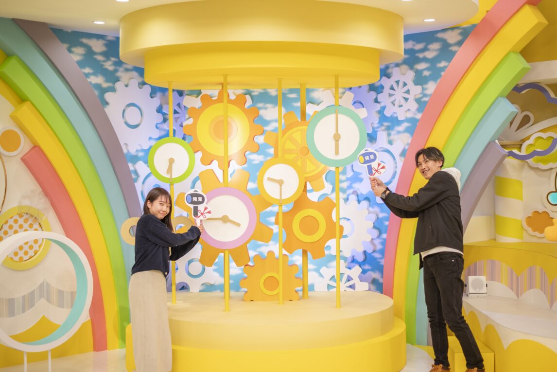 見学した番組スタジオの背景には、番組の開始時間を示す「時計」がモチーフとして使われていました。何気なく見ていた背景にも、しっかり意味が込められています。